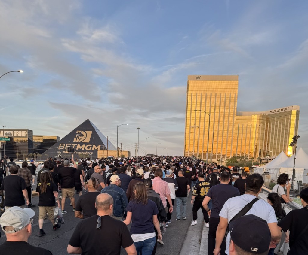 Leaving Allegiant Stadium is anything but peaceful. Fifty thousand people exiting at once is chaos. What should be a 15-minute walk to Mandalay Bay turned into an hour-plus sweat-soaked zombie shuffle.